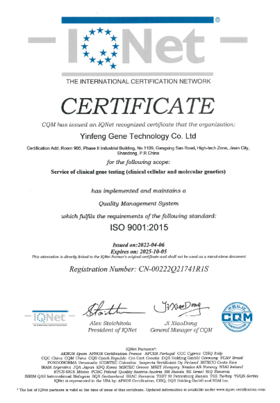 ISO9001质量管理系统国际认证联盟(IQNet)证书